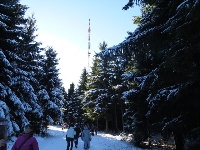 Trasa, mnohokrát prošlápnutá a přece pokaždé jiná, nám nabídla, co nejlepšího měla – slunce stoupalo s námi, takže na vrcholu nejvyšší hory Českomoravské vrchoviny přímo oslňovalo!