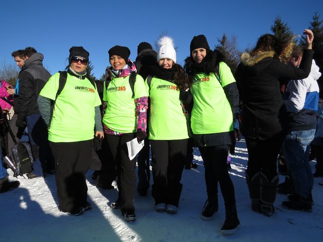 Podle pozdějšího sdělení pořadatelů se během 31. prosince 2016 vystřídalo na vrcholové plošině 6 025 pěších a cykloturistů – my jsme dorazili krátce po 11. hodině, kdy se začali scházet poutníci z kratších tras. Kromě tradičních stánků jsme nalezli stanoviště lepých hostesek z oddílu VHT Počátky, které zájemcům poskytovaly informace o závodu, v němž bude hrát Javořice hlavní roli: během celého roku 2017 lze vystoupat na její vrchol jakýmkoliv způsobem (pěšky, běžky, na kole), ovšem vlastní silou a bez cizí pomoci – soutěží se o nejvyšší počet výstupů a nejvyšší hodnoty nastoupaných výškových metrů. Zájemci se registrují na stránkách www.javorice365.cz , kde naleznou i úplná pravidla závodu. Jen dodávám, že stále oblíbenější kola s elektropohonem nepřipadají jako přesunový prostředek v úvahu.