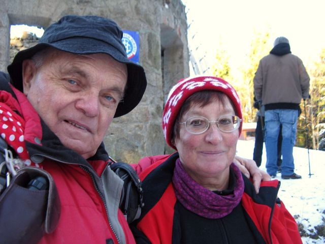 Na okraji Jihlavy, tam, kde se stezka noří do lesa a vede na 613 metrů vysoký vrch, kde od roku 1907 (letos je to tedy 110 let) stávala bezmála 28 metrů vysoká dřevěná rozhledna, z níž po požáru v roce 1940 zbylo jen kamenné torzo, vlastně přes čtyři metry vysoký osmiúhelníkový sokl, jsme se zastavili, abychom si na výšině, z níž jsme obhlédli město, připili na rok, který právě začíná.