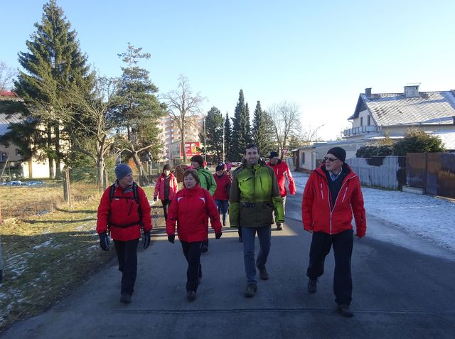 Ve 13:30 jsme se sešli s kolegy z KČT Čeřínek v Bedřichově před bývalou Jitřenkou – dostavilo se asi 25 turistů se kterými jsme se vydali na Šacberk, abychom se setkali s dalšími jihlavskými turisty a známými.