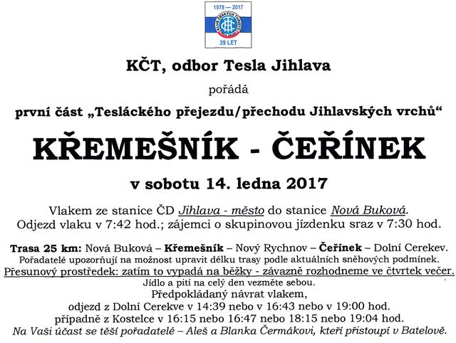 Letošní zima byla bohatá na sníh, takže ve dni, naplánovaném a zveřejněném v kalendáři pořádajícího odboru KČT Tesla Jihlava, se mohl opravdu uskutečnit přejezd a nikoli přechod, který si příroda soustavně vynucovala od roku 2012.