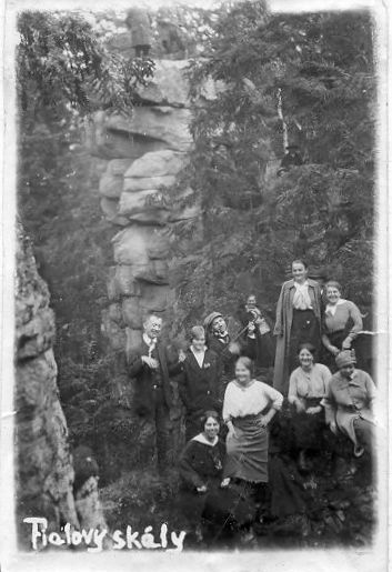 Pro zkrácení chvíle postavili jsme monument vlastnoručně tesaný na Strnadově stezce, prof. Fiala nápis na skalách, který však najde jen oko povolaného, který se vyškrábe až na jejich vrcholek. Nápis dostane i Kofroňův balvan na skalách a balvan Benešův.