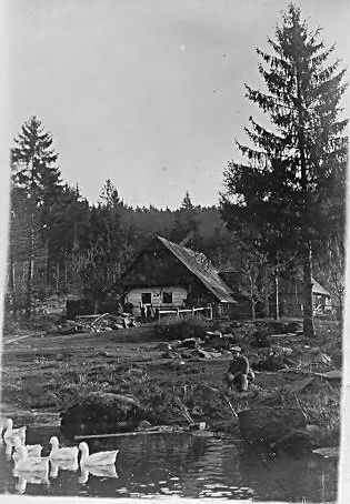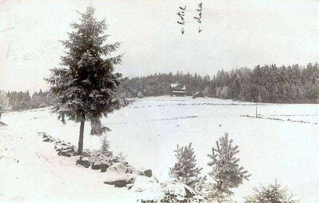 1.1.1916, putoval poutník tmavými lesy, mezi vysokými proplétal se skalami v dobách zlých a trudných. Až rozevřel se les a idylická chalupa na Dolních Hutích s vábným obrázkem husí pečeně sílí poutníka a po krátké chvíli v pozadí se objevuje chata a po několika krocích dýmající krb vábné slibuje pohoštění, podepsán Kofroň (o sněhu ani potuchy).