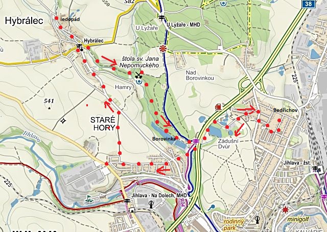 Trasa vycházky: Jihlava-Bedřichov – Kněžský rybník – Staré Hory – Hybrálec – štola sv. Jana Nepomuckého – rybník Borovinka – restaurace Starka ve Starých Horách – Bedřichov = celkem 14 km