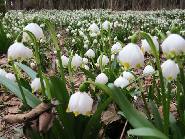 Bělost a křehkost kvítků i zářivá zeleň stonků ostře kontrastuje s šedivými zbytky loňských travin a ještě spících mokřadů – podivuhodné, nepřehlédnutelné spojení…