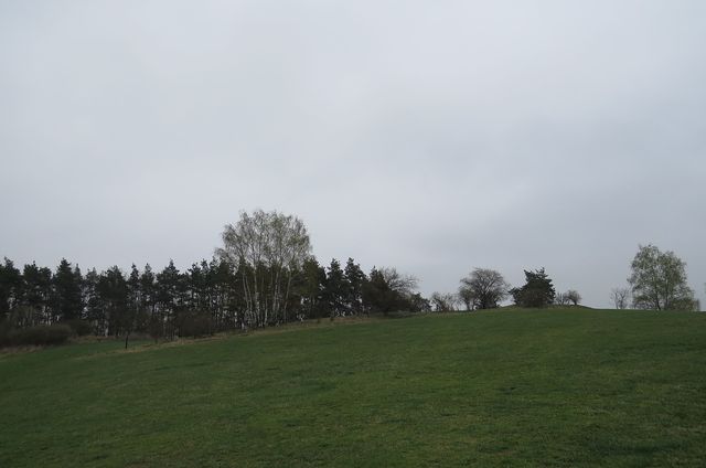 Když se na nedalekém obzoru objevil náměšťský zámek, odbočili jsme z hlavní silnice a zamířili vzhůru po zemědělské cestě mezi loukami, asi po stu metrech jsme pokračovali pěšky k nenápadnému travnatému pahorku s překvapivým názvem Špilberk.