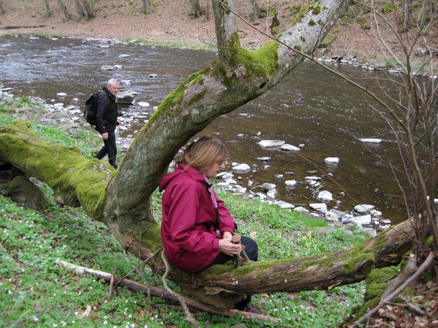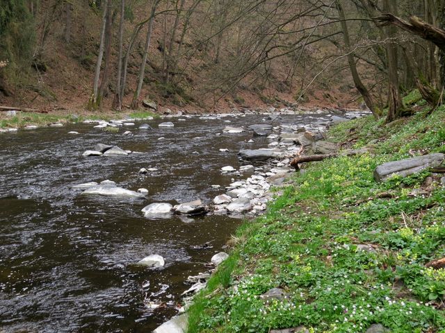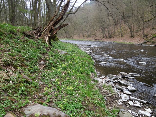 Po pravém skalnatém břehu se nedalo dál pokračovat, museli jsme se vrátit na hradní ostroh a stoupat vzhůru směrem k hájence. Podívejte se na mapku výpravy za jarní květenou v okolí Sedleckého hradu.