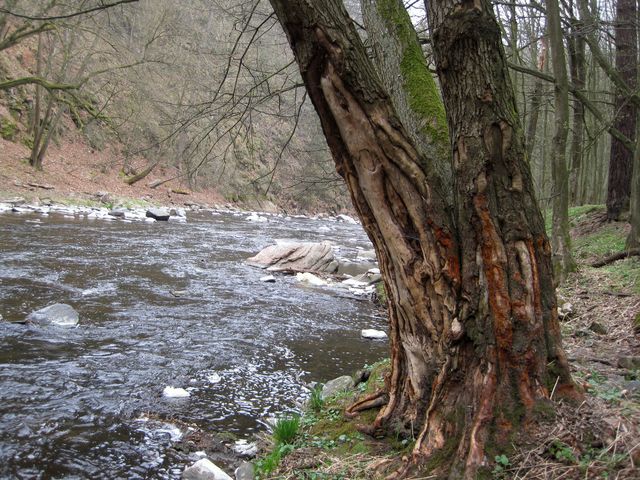 Břeh řeky vypadal velmi přívětivě, ale stromy rostoucí v jeho blízkosti někdy nemají právě snadný život – ledy, které se na klikatém toku hromadí, je dokážou poranit či vyvrátit.