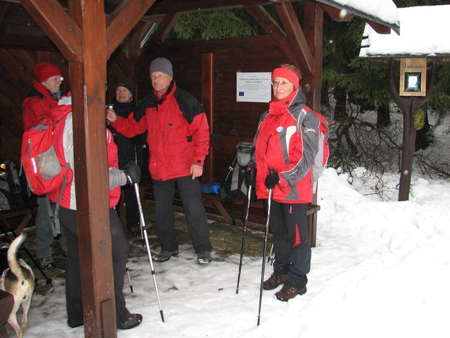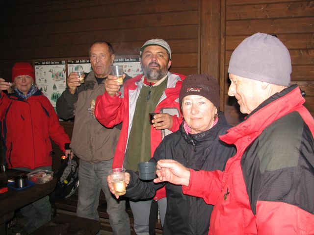 Jen pár metrů pod vrcholem nás vítala a zvala k posezení Lovecká chata, v níž jsme posvačili a popovídali…