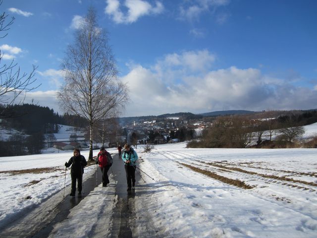 Následovaly Hostětice, za nimi skvělé výhledy do kraje, pak alej Lipky – a už jsme vcházeli do milované Telče, která podvečerním zubatým zimním sluncem oděná, nechala se obdivovat…