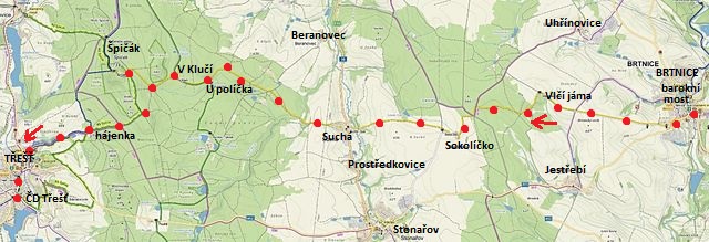 Trasa vycházky: Brtnice ŽTZ – Vlčí jáma – Sokolíčko – Suchá – U Políčka – V Klučí – Pod Špičákem – Velké Javoří ZTZ – hájenka Třešť MTZ – Třešť – Třešť ČD = 21 km