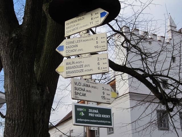 Jitka Korbelová navrhla vycházku po trase Brtnice – Třešť, značenou až k rozcestí pod Špičákem (734 m) žlutou barvou. Den byl chladný a větrný, ale slunečný, takže 14 účastníků, kteří odjeli v 7:45 autobusem z Jihlavy do Brtnice nelitovalo svého rozhodnutí vydat se trasou nenápadného půvabu, kterou kvůli dobrým výhledům ocení především čekatelé na vzkříšení jara. Ropotání mízy se mi sice nepodařilo zaslechnout, ale kilometry z dnešního přídělu byly radostné a povzbudily duši i tělo.