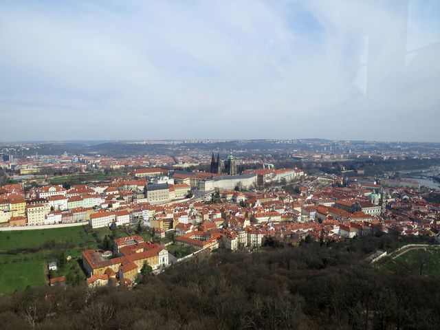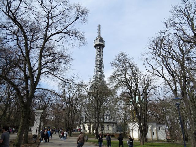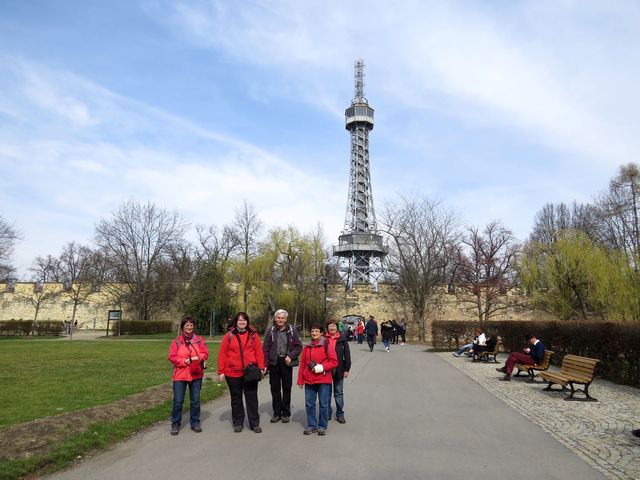 Výstup na Petřínskou rozhlednu byl pro účastníky akce Prahou za jarním sluníčkem zdarma. Jen krátce se zmíním, že rozhledna (65,5 m vysoká) byla postavena v roce 1891 Klubem českých turistů podle návrhu architekta Vratislava Pasovského. Výprava československých turistů se zúčastnila v roce 1899 světové výstavy v Paříži a inspirovala se Eiffelovkou – 5x menší napodobenina pařížské věže vyrostla na Petříně při příležitosti Zemské jubilejní výstavy.