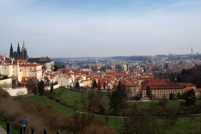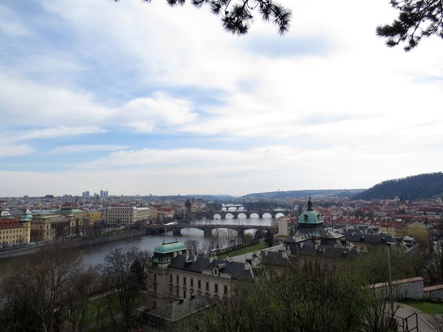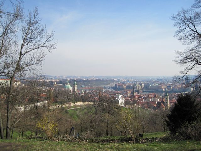 Z vyhlídek v Chotkových sadech jsme obdivovali Prahu, viditelnost byla velmi dobrá. Zašli jsme k soše Julia Zeyera a pokračovali k můstku vybudovaném v roce 1998 ze soukromých finančních prostředků prezidenta Václava Havla – na jedné straně Kramářova vila (dnes sídlo předsedy vlády), na druhé unikátní secesní rezidence (dnes galerie) sochaře Františka Bílka z roku 1911, před ní Bílkovo sousoší J. A. Komenský se loučí s vlastí.