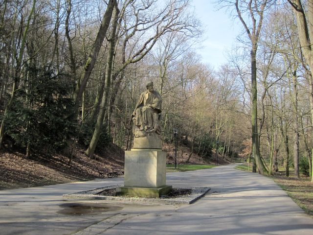 Na dohled od Hladové (obranné) zdi táhnoucí se od Újezdu na Strahov a dál až k Hradčanům, vybudované v polovině 14. století českým králem Karlem IV., nám cestu po svahu Petřína zastoupila socha básníka Jaroslava Vrchlického (1853–1912).