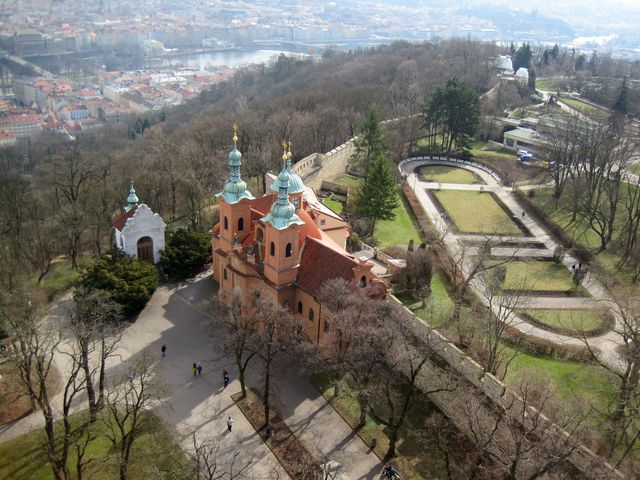 – k restauraci Petřínské terasy, výhledy na Prahu