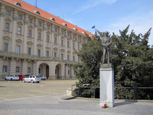 Bronzová socha prezidenta Edvarda Beneše (1884–1948), odlitá podle originálu Karla Dvořáka vytvořeného ještě na Benešova života, byla před Černínský palác instalována v roce 2005.