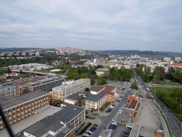 Náš další zájem, asi stejně jako většiny návštěvníků Zlína, se soustředil na vyhlídku z pověstného Baťova mrakodrapu – sedmnáctietážové správní budovy č. 21 vystavěné v letech 1936 –1939 jako ústředí obuvnické firmy Baťa založené v roce 1894. Samozřejmě jsme tu byli i při minulé návštěvě, ale lačně jsme znovu rychlovýtahem vyjeli na vyhlídkovou terasu – centrum Zlína, kde tehdy probíhaly opravy, bylo z té výšky dokonale upravené.