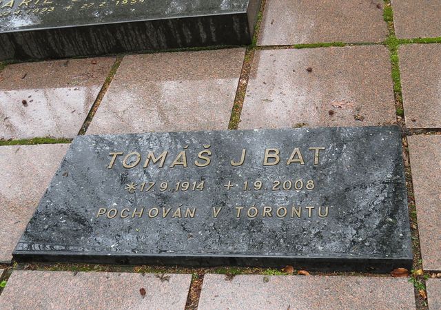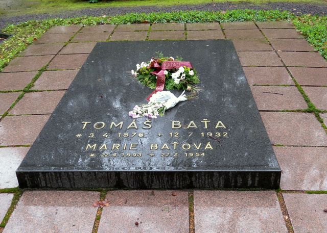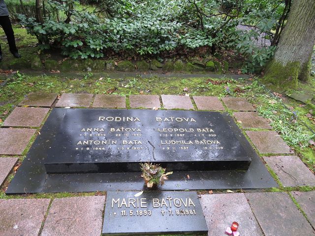 Věřte či ne: venku silně pršelo po celou dobu, kdy jsme pobývali v ateliérech – když jsme vystoupili z auta, abychom zašli na Lesní hřbitov, přestalo. Zastavili jsme se u hrobu Hermíny Týrlové i Karla Zemana a přešli do sektoru, kde je pochovaná rodina Baťů.