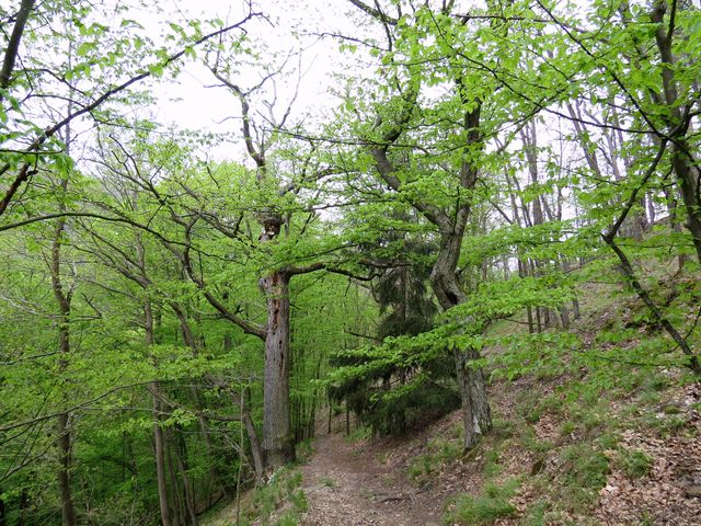 Od směrovníku před klášterem jsme se pěšky vydali po červeně značené turistické cestě na náhorní plošinu, kde jsou ruiny hradu Kraví Hora.