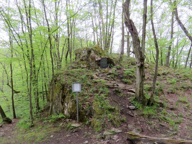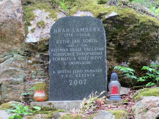 Na vrcholové plošině je pamětní deska připomínající jak hrad, tak slavného majitele panství.