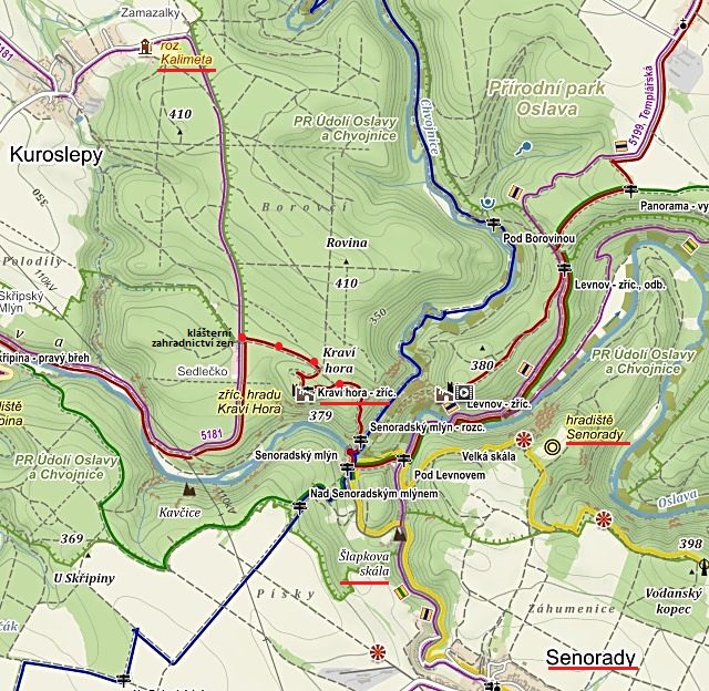 Z předešlé mapky je dobře patrné, že návštěva Senorad nebyla náhodná – pro poznání a pochopení krajiny na druhém břehu řeky Oslavy, rovněž historických souvislostí, důležitá.