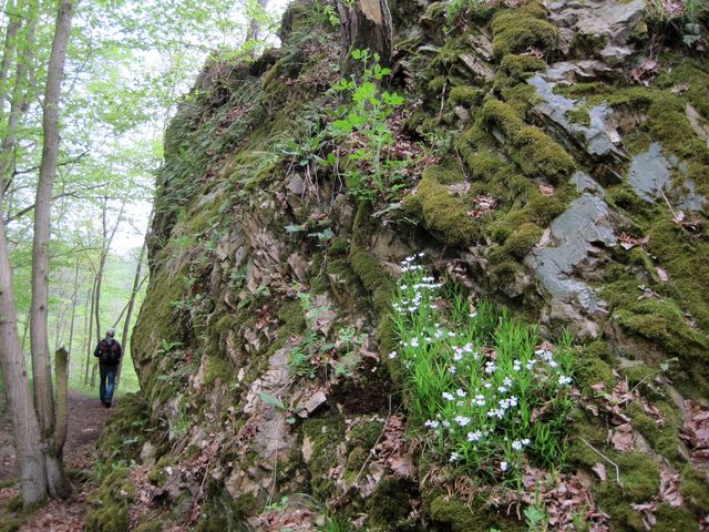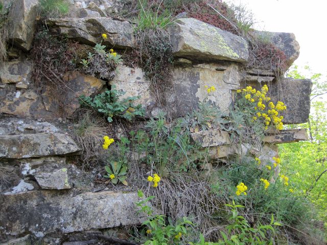 Některé kytky si vybraly stanoviště na skalní výšině, kde se kdysi vypínal hrad Lamberk: