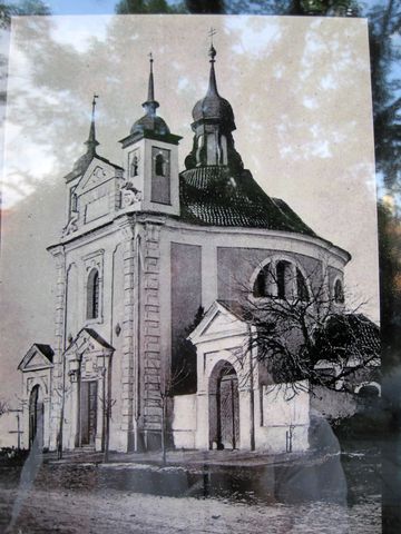 Z úzké ulice se nedá udělat takový obrázek, jaký by si neobvyklá stavba zasloužila, zařazuji proto fotku z infotabule před kostelem: