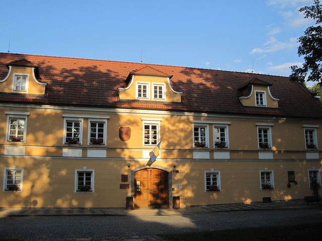 Kolem budovy úřadu, proti němuž je parčík, vede dlážděná cesta k zámku. Dříve než návštěvník vstoupí do areálu, zpravidla postojí před bránou, aby se pokochal výhledem na hluboké zalesněné údolí Lužnice a nepřístupné skalní stěny nad nimiž vyrůstá klášterní kostel.