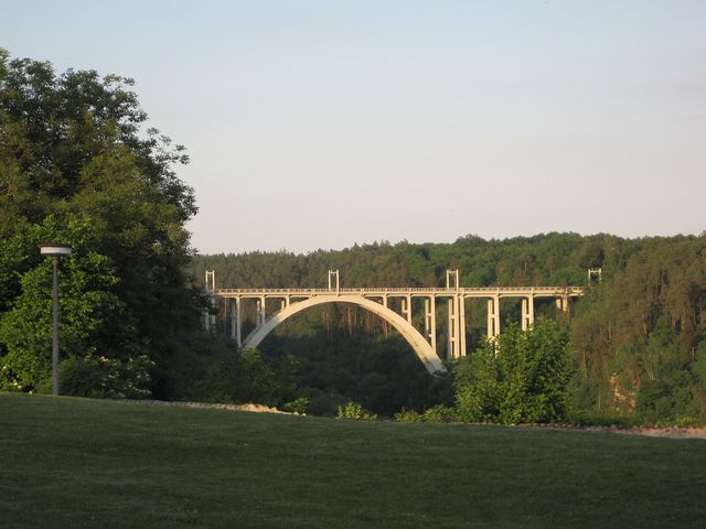 Most byl slavnostně otevřen 28. října 1928 k 10. výročí samostatnosti republiky. V té době se jednalo o nejvyšší železobetonový oblouk v ČSR, výška nad hladinou Lužnice je asi 50 m, celková délka 190 m, šířka téměř 9 m, hlavní oblouk má rozpětí 90 m.