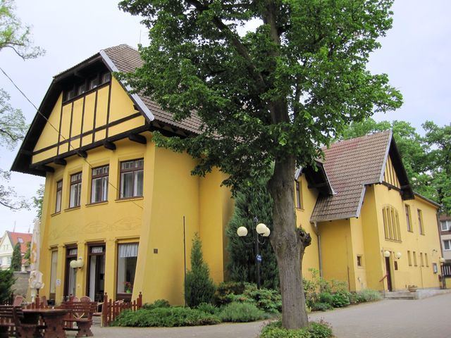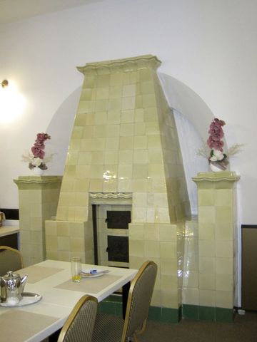 Moderní přestavba značně změnila vzhled vily, ale zjistila jsem, že interiér někdejší knihovny v přízemí s členitým prostorem a krbem byl obnoven podle původního projektu profesora Kotěry (*1871–†1923) – dnes je tu lázeňská jídelna – a samozřejmě se tam vydala. 🙂