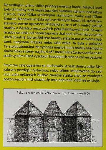 Uprostřed opevnění, poblíž bašty č. 5, stávala brána zvaná Velká či Pražská – v polovině 19. století ji zbourali, v současnosti je na jejím místě ošklivé nákupní středisko.