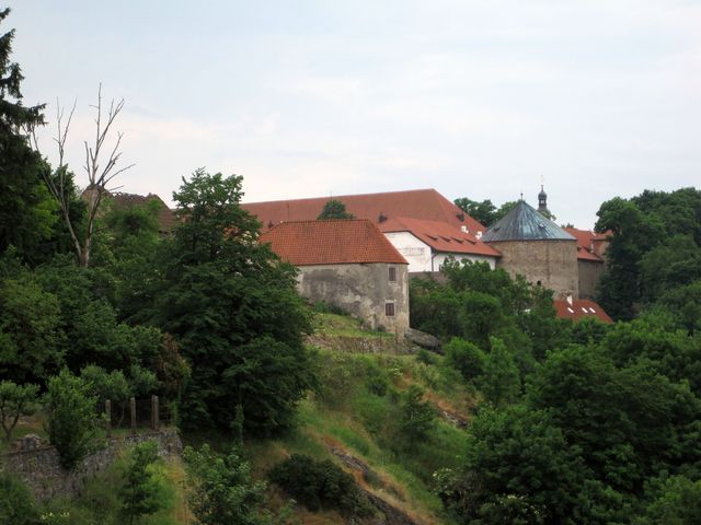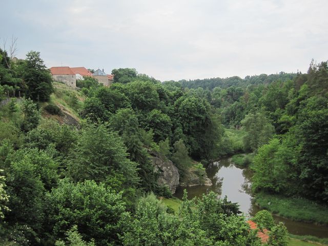 Kvůli romantickým výhledům nebylo možné otočit se a pádit okamžitě zpět po naučné stezce – ta v současnosti končí na skalnatém srázu nad Smutnou, ale pan Havelka se svěřil, že má v úmyslu zprůchodnit její pokračování tak, aby se tato překrásná část nedaleko centra Bechyně zpřístupnila veřejnosti – odtud lze sledovat západní opevnění města.