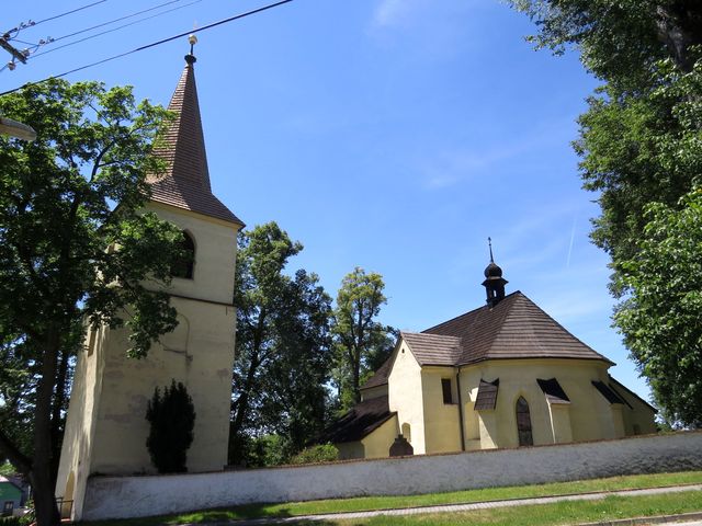 kde jsme kromě starobylého kostela a samostatně stojící věže věnovali pozornost pískovcovým náhrobkům vytvořeným sochařem Františkem Bílkem, přítelem Jakuba Demla. Hostinský Jan Kryštof zemřel v roce 1916 na následky poškození zdraví způsobené válečnými útrapami – v roce 1918 byl na jeho hrobě instalován pomník se stélou Panny Marie, rok poté vytvořil sochař Bílek, znovu na žádost Demlovu, náhrobek s reliéfem Krista u místa posledního odpočinku Matylky Demlové, zemřelé v roce 1910 ve věku 24 let na tuberkulózu.