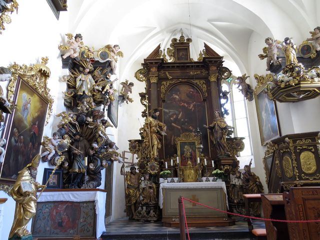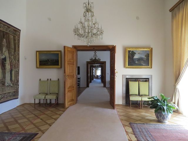 Žlutě značená cesta nás zavedla k náměšťskému zámku – poslední prohlídka reprezentačních místností začínala v 15:00 – minutu poté jsme byli zařazeni do výpravy a ocitli se v zámecké kapli, kde nám oči přecházely z bohaté výzdoby a uši užasle přijímaly dechberoucí informace, že se zde uskutečnila premiéra Requiem Antonia Salieriho (1750–1825), který skladbu věnoval svému příteli, mecenáši a skladateli Jindřichu Vilému III. (1770–1842), majiteli náměšťského panství.