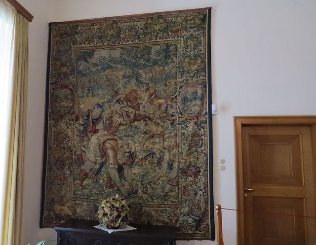 Náměšťský zámek vlastní vzácnou sbírkou tapisérií – kolekce zahrnuje díla vyrobená od poloviny 16. století, nejmladší vznikla v 19. století. Gobelíny pocházejí převážně z proslulých dílen na území dnešní Belgie, byly tkány podle předloh věhlasných tehdejších umělců (např. z okruhu Rubensova). Průvodkyně nám sdělila, že nejstarší je nástěnný koberec s rostlinnými a zvířecími motivy z doby kolem roku 1540.