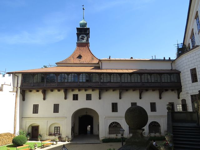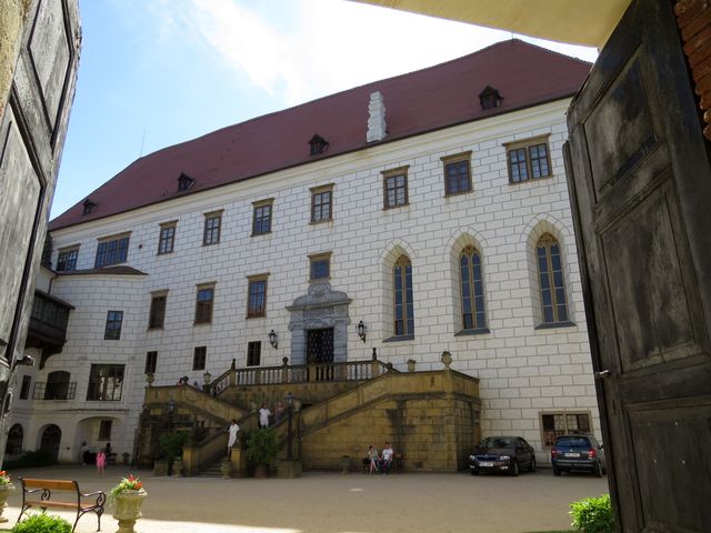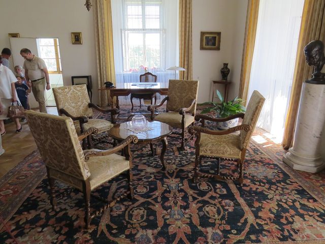 Vycházeli jsme na nádvoří s trpkým smíchem – mladá průvodkyně nám výstižně a neotřele vysvětlila existenci Masarykovy busty v Benešově obývacím pokoji: prý to byl jeho kamarád… Sdělení, že zdejší lustry pocházejí z Kamenického Šenova v jižních Čechách, už je jen detail… 🙂