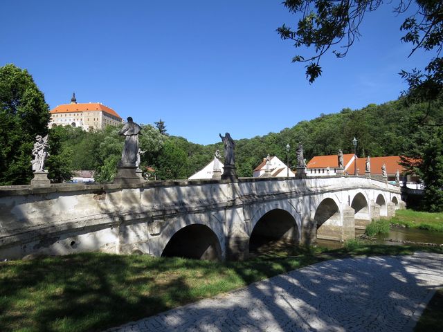 Opěvovaný náměšťský most, třetí nejstarší kamenný most u nás, byl postaven roku 1737, o 7 let později byl ozdoben 20 sochami světců a archandělů. Je 75 metrů dlouhý, 8 metrů široký, má 7 klenebních oblouků. Při opravě v roce 1986 byly na most osazeny kopie barokních soch, originály jsou uloženy na zámku.