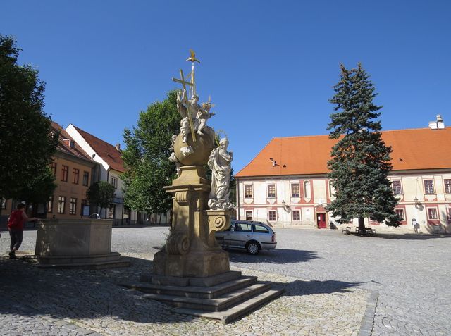 Ospalé sobotní odpoledne nám umožnilo v klidu si prohlédnout náměstí a kochat se známými scenériemi – zámek je opravdovou vrcholovou dominantou města, centrum se sousoším Nejsvětější Trojice a kamennou kašnou je líbezné. Sousoší nechala postavit v roce 1715 hraběnka jako díkůvzdání za to, že se Náměšti vyhnula morová epidemie.