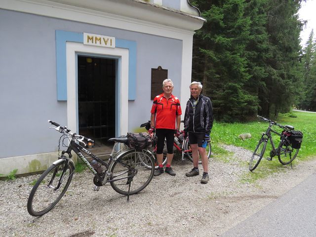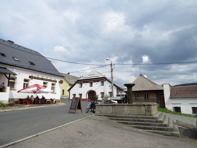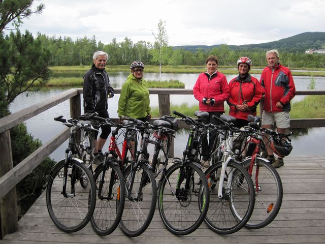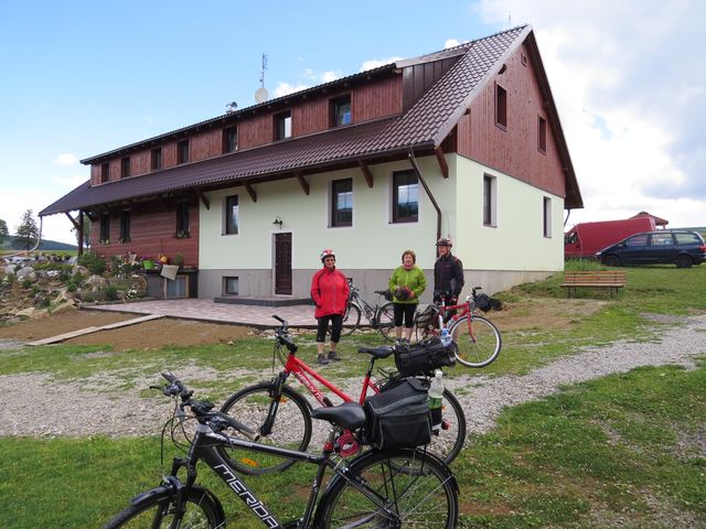 Čtyři bicykly na střeše pežotka si též nestěžovaly a v klidu počkaly i před naší oblíbenou píseckou restaurací Na Šumavě, kde jsme poobědvali smažený řízek. Po příjezdu do Borových Lad, kde jsme vždycky ubytováni a skvěle opečováváni v penzionu U Puštíka, se sice počasí trochu ustálilo, ale vpodvečer jsme se rozhodli jen pro krátkou cyklovyjížďku k Chalupské slati.