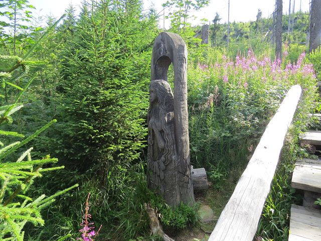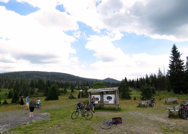 Pondělí 17. července 2017 – pokračovali jsme v cyklotoulání šumavském – stavili jsme se v návštěvnicky útulném infocentru Svinná Lada a pokračovali: Nové Hutě – Pláně u Churáňova – před Zadovem odbočka po ŽTZ ke Zlaté Studni – U Tří jedlí – Zhůří – vyhlídka na Huťské hoře – Horská Kvilda – Kvilda – Borová Lada = 38 km
