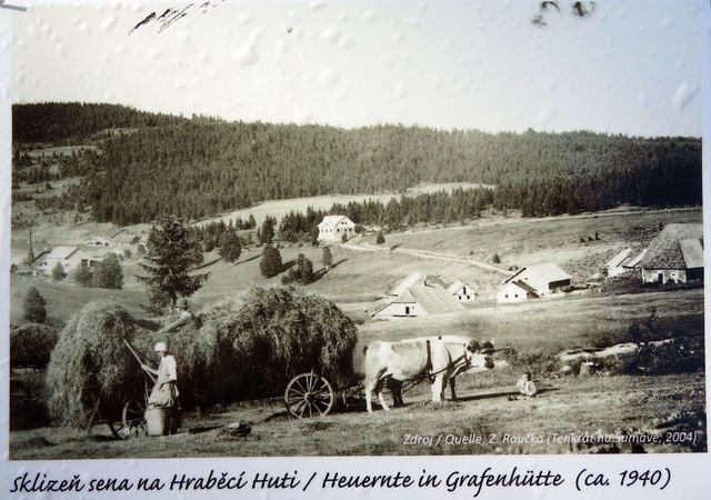Zastavujeme vždycky jen nad Kvildou u Hraběcí Huti, abychom si užili výhledu na okolní spanilé louky – ne v každé době tu na rozlehlých prostorách bylo tak vylidněno jako dnes…