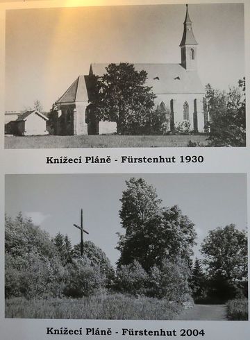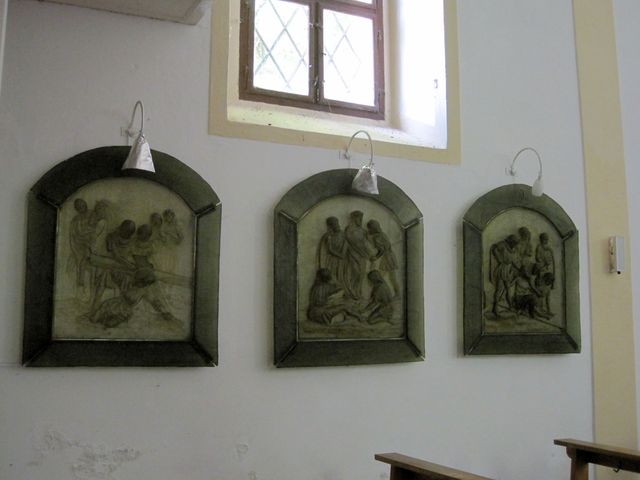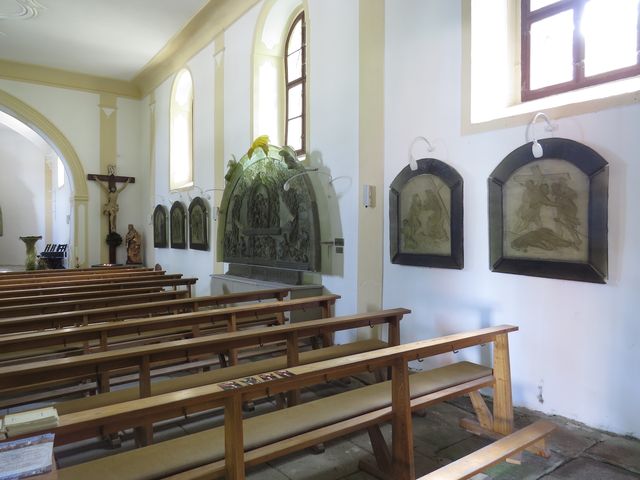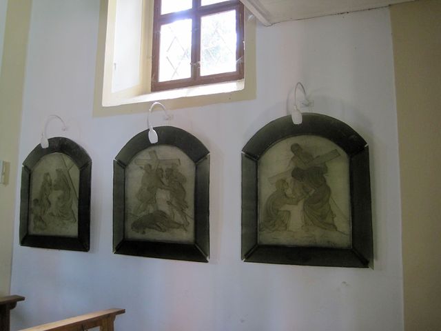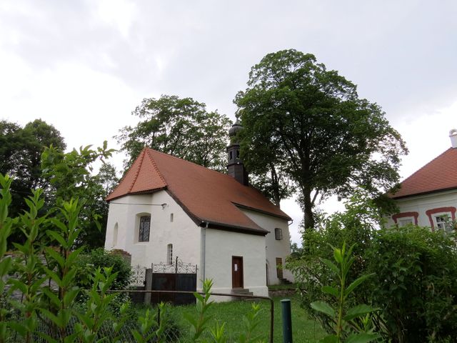 Kaplička a křížová cesta na protějším vrchu vznikly v roce 1860, roku 1956 byly srovnány se zemí (zůstal jen litinový kříž), obnoveny po padesáti letech.