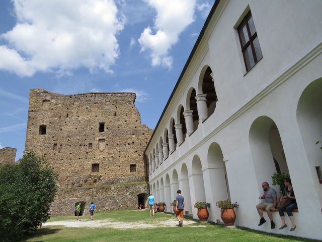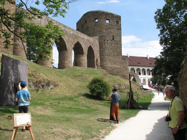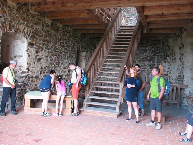 Návštěvníci neobdivují jen impozantní kamenný most, ale i rozlehlé potravinové sklepy a 13 metrů hlubokou hradní cisternu jako zásobárnu vody. V areálu nebyla studna, proto chytali dešťovku a do cisterny přiváděli vodu z říčky Ostružné obtékající skalisko. Voda se však rychle kazila a nedala se pít, proto vznikl hradní pivovar a běžným zdravým nápojem bylo v té době, i pro děti, pivo. Průvodkyně nám vysvětlila, že pivo tehdy vařili husté a výživné (přidávali do něj kousky chleba či masa) a jedli jej lžící – někteří se cpali přes míru, a tak vznikl výraz „ožrat“ se – výraz „opít“ je z pozdější doby, když už se pivo vařilo řídké… 🙂