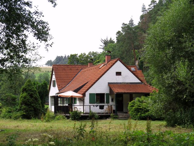 K Ostružné (dříve též Pstružné) jsme se nevydali jen kvůli naučné stezce – chtěli jsme vidět Werichovu chatu usazenou v krásném údolí jen pár metrů od řeky, která od roku 1938, kdy koupili pozemek od majitelů vedlejšího mlýna a pily, přinášela neustálou radost vášnivému rybáři, kterým Jan Werich byl. V řece, pramenící na Šumavě, bývalo množství pstruhů a Werich sem s rodinou přijížděl vždy na celé prázdniny (vyjma doby strávené za války v Americe). Podle návrhu architekta Františka Zelenky, šéfa výpravy v Osvobozeném divadle, tu postavil chatu, do níž naposledy přijel v říjnu 1980 – zde, nemocen, upadl do bezvědomí, z něhož se v nemocnici, kam byl převezen, už neprobral – obrázek milovaného místa si tedy odnesl sebou na věčnost…