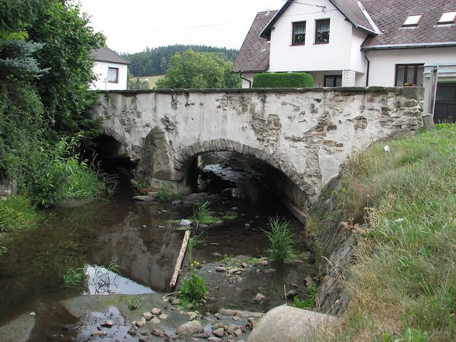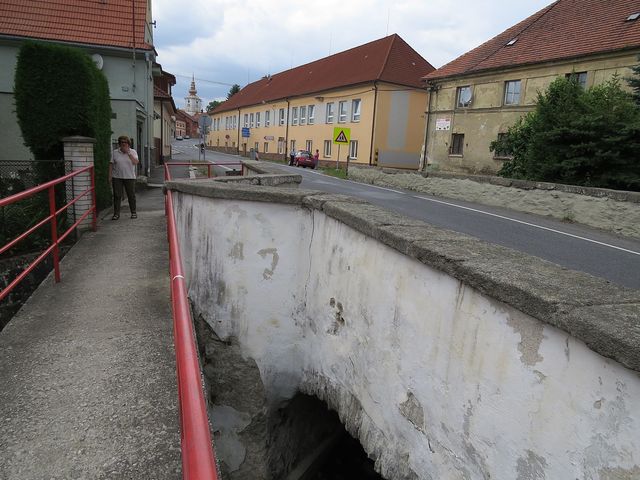 Abychom využili návštěvy v tomto kraji, kam od nás z Vysočiny zavítáme jen sporadicky, zajeli jsme do blízkého městyse Kolinec, kam z Velhartic směřují bystré vody Ostružné – čas nám dovolil jen obhlídku opraveného barokního mostu z 18. století (stále v činné službě). Kulturní památka přemosťuje místní Kalný potok, který je zcela práv svého názvu. 🙂