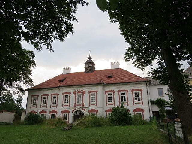 Mnohem víc mě ale zaujal nedaleký barokní zámek, postavený v roce 1721 na místě bývalé tvrze a před několika lety zrekonstruovaný. Mlázovský stavební celek tvoří kromě zámku s přilehlým parkem gotický kostel sv. Jana Křtitele, fara a socha sv. Jana Nepomuckého.