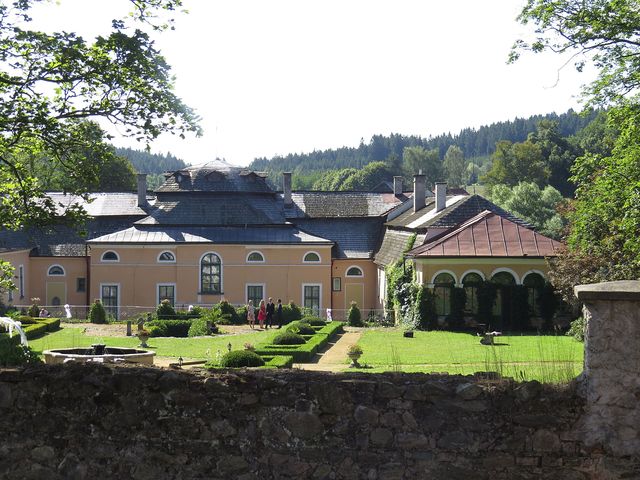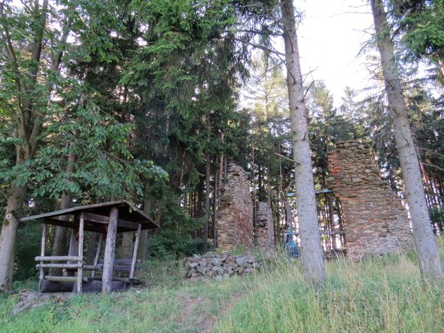 Zjistili jsme, že z nedostatku času nemůžeme zajít do blízkého lesíka, bývalé obory, kde byla v roce 1888 postavena kaple sv. Kříže, která sloužila jako hrobka rodiny Richlých a Schmidtových – nevadí nám to, aspoň máme příležitost zajít do Kvasetic ještě jednou. 🙂