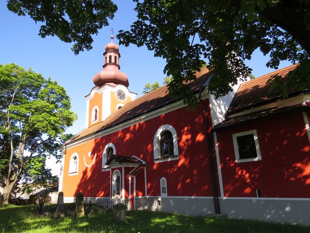 Sestoupili jsme do Úsobí, potěšili se pohledem na opravený kostel sv. Petra a Pavla, do dnešní podoby přestavěný v 18. století
