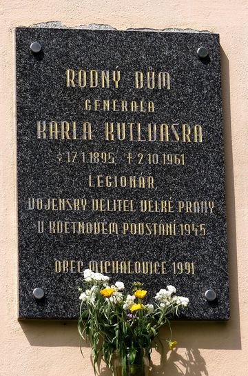V Michalovicích jsme se zastavili před rodným domem generála Karla Kutlvašra, legionáře, který se po smrti plukovníka Švece stal velitelem jeho pluku, v květnovém povstání v roce 1945 byl vojenským velitelem Prahy a po únoru 1948 se stal obětí politické perzekuce ze strany komunistického režimu.